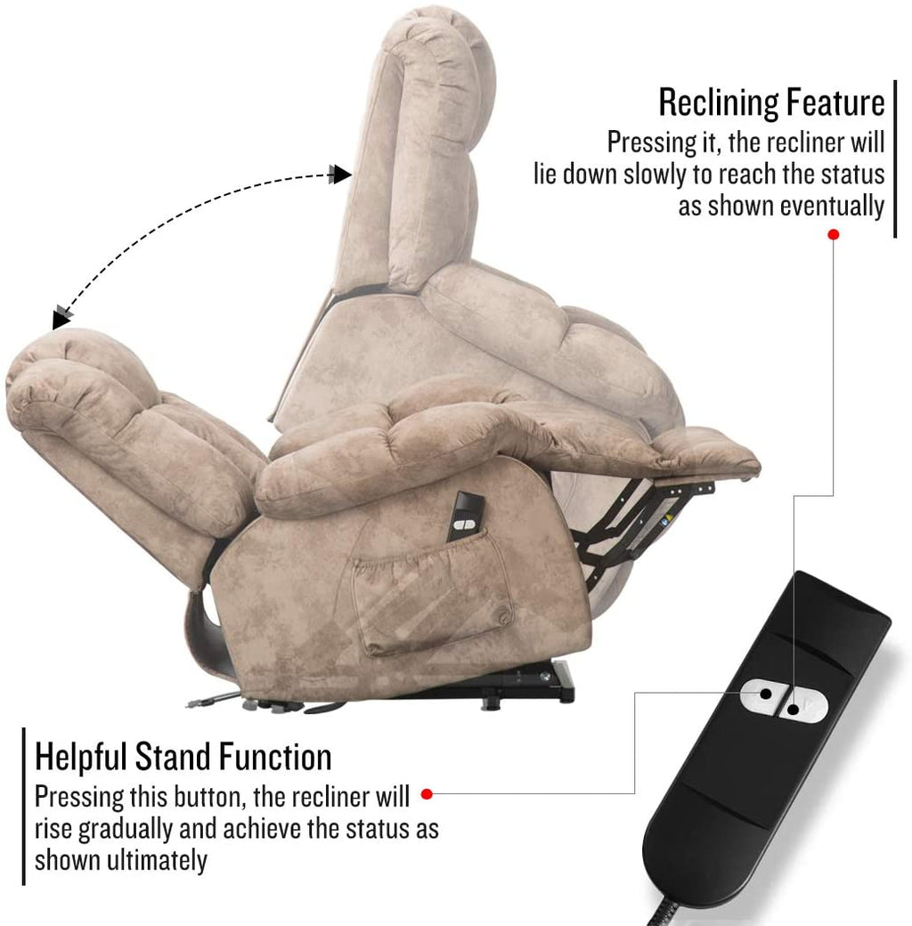 This overstuffed foam motion reclining mechanism lift chair is functional for elderly and people with limited mobility, electric powered lift mechanism could lift you up smoothly and safely. Remote control activates transitions between reclining, sitting and lifting and can stop at any position in-between with ease. You can quickly assemble the item and use it in an easy-to-understand manual. Durable metal frame gives this chair stability and strength, and the resilient microfiber upholstery stands up to regular use in your home while bringing ultimate comfort.