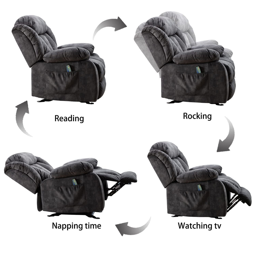 CANMOV Massage Glider Recliner Chair with Heat and Vibration Manual Recliner Antiskid Fabric Single Sofa Heavy Duty Reclining Chair for Living Room, Grey