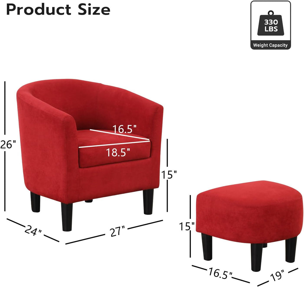 Experience ultimate relaxation with the Modern Accent Chair, crafted with high-quality padded foam for comfort. Perfect for napping, reading, or using your mobile after a long day. The chair comes with a matching ottoman to rest your feet or use as a standalone stool. Compact yet stylish, this chair is ideal for living rooms, bedrooms, dens, offices, or small apartments. Easy assembly allows you to set it up in minutes.
